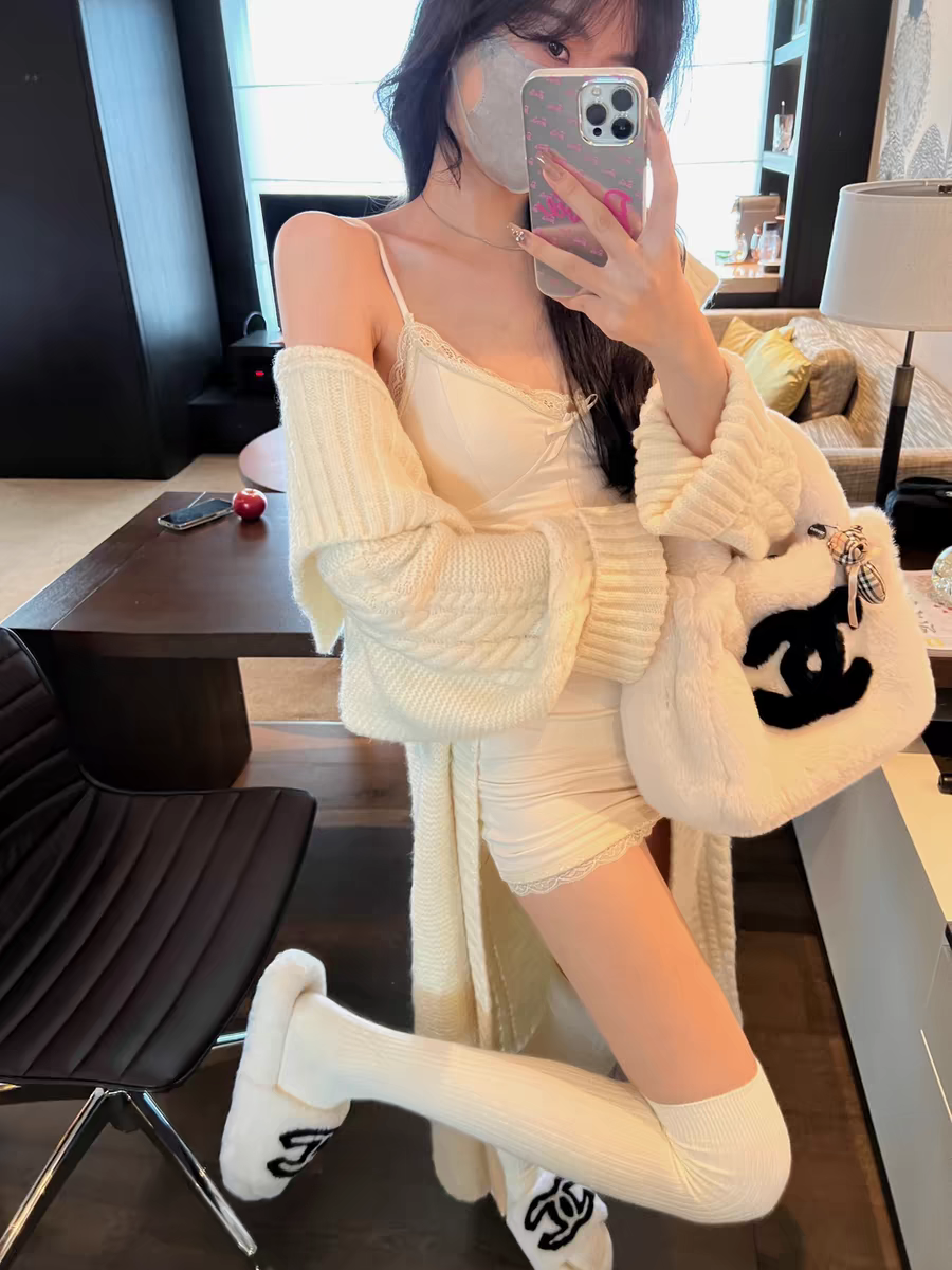 IN MIMIFACE 毛衣针织外套气质大翻领慵懒感气质休闲中长款开衫女